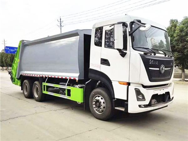 国六东风天龙18方压缩式垃圾车上装配置:厢体材料为Q345锰钢,厚度边4mm底4mm,厢体为弧形容积更加大,容积为4立方米。双向压缩结构,带尾部侧部双污水箱,湖北博利或烟台未来油缸,日本华尔卡密封圈,合肥长源齿轮泵,扬州中梅多路阀,中联样式PLC控制,手电一体操作模式,带驾驶室操作,主要组成部分由密封式垃圾厢、液压系统、双操控系统、多元化翻倒机构、操作系统组成,两侧双电控,带驾驶室内操作,底板支撑加强,开放式易清洁污水箱。压缩式垃圾车采用机电液一体化技术,借助机、电、液联合自动控制系统、电脑控制、手动操作系统,通过填装器和推铲等专用装置,实现垃圾倒入、压碎或压扁、强力装填,把垃圾挤入车厢并压实和推卸,污水全部进入污水厢,解决了垃圾运输过程中的二次污染的问题。压缩式垃圾车具有自动反复压缩以及蠕动压缩功能,压缩比高、密封性好、装载量大、操作方便、环保性好、整车利用功率高等优点。作业自动化,垃圾收集方式简便、高效。