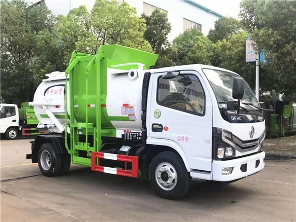 国六东风小多利卡4.5方餐厨垃圾车上装配置:罐体容积4.5方,采用4mm优质碳钢制作,圆距形罐体,液压系统,配拉杆式提升机,可挂120/240升垃圾桶,推铲卸料,具有干湿分离,罐体尾门液压打开和锁紧+手动锁紧装置,罐尾设液体自流阀,液位窗,后门液压开启。用于运输液态垃圾,其特点操作简单,密封性好,无泄漏,无异味,常用于餐馆的垃圾转运处理。