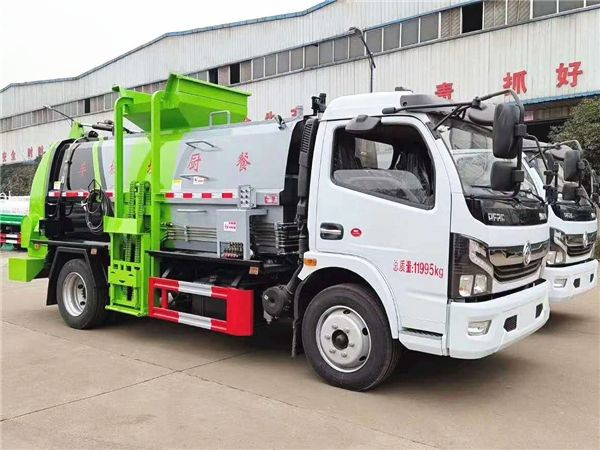 国六东风大多利卡6方餐厨垃圾车上装配置:罐体容积6方,采用4mm优质碳钢制作,圆距形罐体,液压系统,配拉杆式提升机,可挂120/240升垃圾桶,推铲卸料,具有干湿分离,罐体尾门液压打开和锁紧+手动锁紧装置,罐尾设液体自流阀,液位窗,后门液压开启。用于运输液态垃圾,其特点操作简单,密封性好,无泄漏,无异味,常用于餐馆的垃圾转运处理。