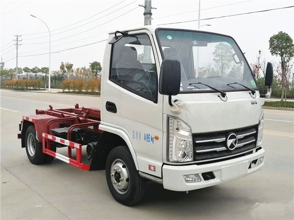 国六凯马4方勾臂式垃圾车上装配置:厢体材质为优质碳钢,一车可配多个垃圾箱,厢体厚度(单位:mm):边2底3,厢体容积:3-4立方厢体两侧和后部为可开式垃圾口设计,方便垃圾的收集和倾倒。翻转架与活动拉臂垃圾车动作设计合理可靠,实现拉箱、锁紧、放箱和自卸作简单方便。厢体放置在副车架时,通过锁紧架的锁紧,使整车在行驶过程中箱体牢固稳定,同时在自卸过程中使箱体与活动拉臂及翻转架连成—体,形成自卸角;当在放置或拉起拉臂垃圾车箱体时,锁紧架的收回动作使得翻转架与附车架连为-体,便于活动拉臂的放箱或拉箱;该机构的动作使得整车工作准确可靠。可手动,电控双操作系统,使用方便简单,通过液压缸完成上厢,下,锁紧,自卸等作业,实现一车多厢的循环运转。