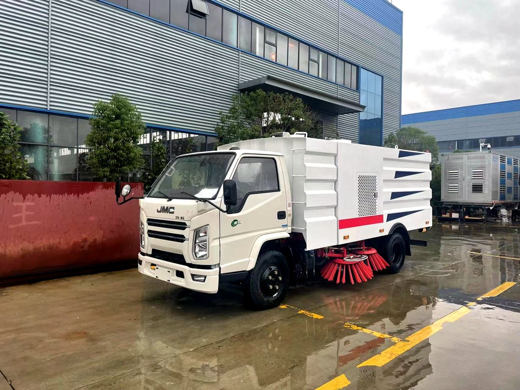 上装配置:整体容积1.5方水/4方尘 ,中置4扫盘,后置吸盘。1.江铃87马力副发动机副发动机(一年质保) 2.力沃液压摆线马达 3.西门子控制开关 4.海德瑞沃电磁阀组 5.碳钢水箱 6.不锈钢垃圾箱 7.刷臂转动使用工程隔套免打黄油 8.伟业免维护离心风机 ;分离式自动离合气,新西山电子隔膜水泵尾部LED箭头灯,手动泵应急系统。可选加装洒水功能,雪铲,雪滚等。